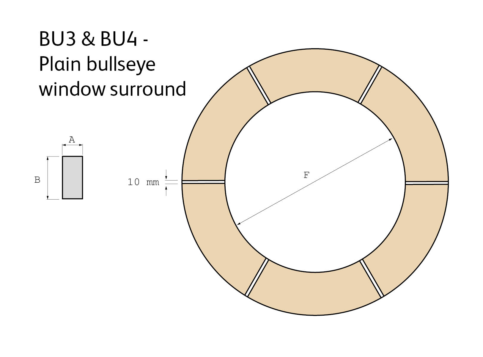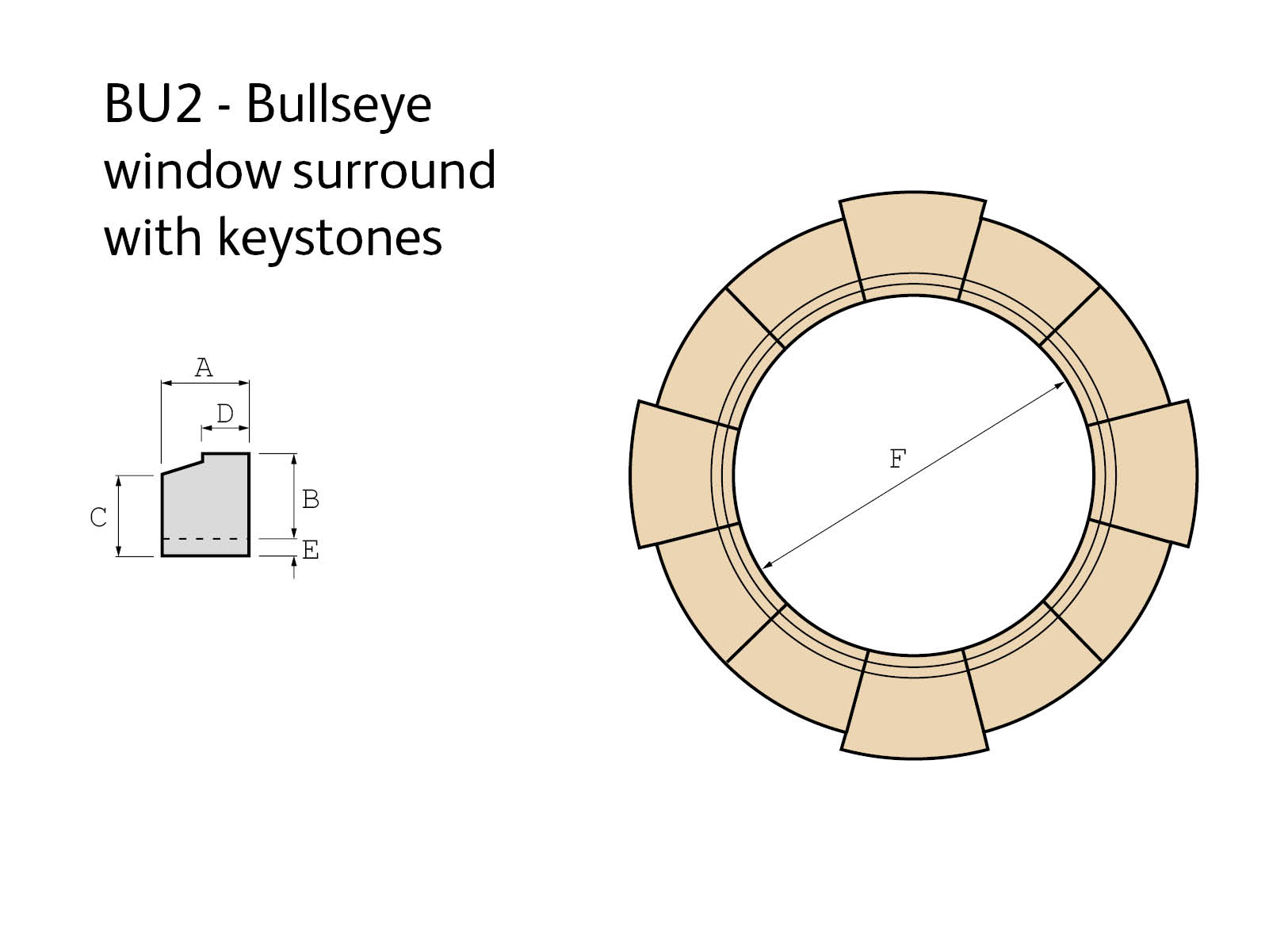 Cast Stone Bullseye window surrounds are manufactured to replicate natural stone Bullseye window surrounds and come in six standard colours: Bath, Buff, Holyrood, Portland, Glamis Red & Sherwood.